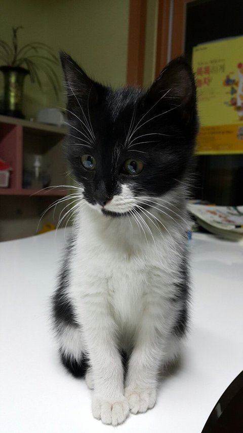 제가 공부방을 하는데 우리 중학생 놈들이 요앞에 전봇대 아래에 큰 쥐만한 고양이를 비타500박스에 버렸다고 근데 너무 말라서 곧 죽을거 같다고 불쌍하다고 데리고 왔어요.