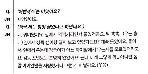 어벤져스 엔드게임 보고 꺽꺽거리면서 울었다는 방탄소년단 정국