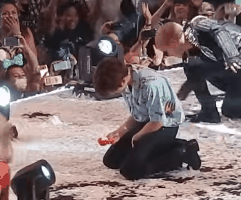 공연 중 무대위로 던져진 아이언맨 인형보고