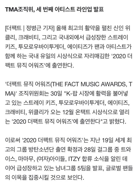 TXT 2020 더 팩트 뮤직어워즈 합류