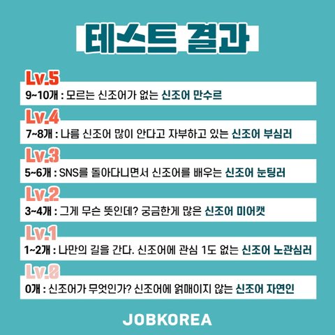 잡코리아에서 만든 신조어 능력고사라는데 저는 레벨 4 나왔네요 ㅋㅋ