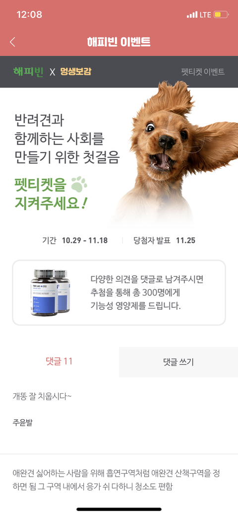 추첨으로 반려견 기능성 영양제를 제공하는 이벤트를 하네요.