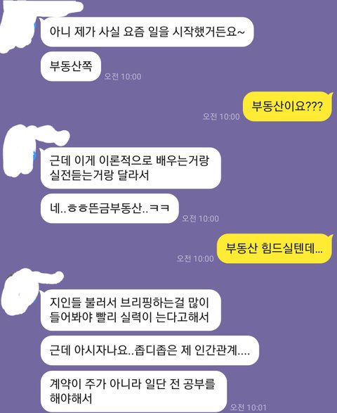 저렇게 부탁을 하길래 뭔가 해서 대화를 했는데 부동산이라더군요...