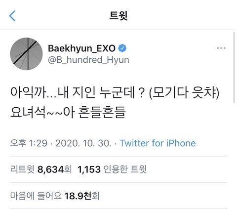 보는 사람에 따라 해석이 달라질 수 있는 이미 계폭 해서 짤만 남은 중의적인 문장 하나 가지고 미친듯이 까내리면서 백현 인성 운운 하는 애들은 본인이 하고 있는 짓을 보길...^^