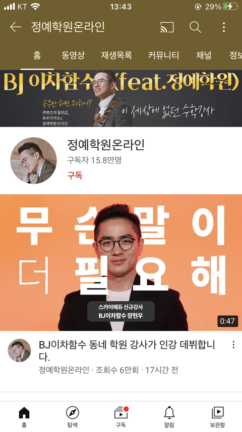 그래서 한창 코로나 시기에 학원 수업 온라인으로 하려고 유튜브 켰는데