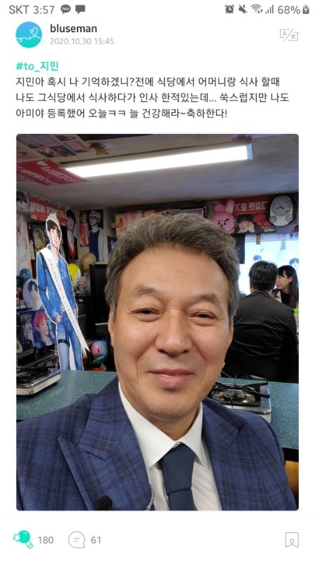 아닠ㅋㅋㅋㅋㅋㅋ 김갑수 배우님(슬의 이사장님) 방탄 위버스에 글 올리심ㅋㅋㅋㅋㅋㅋㅋㄴ