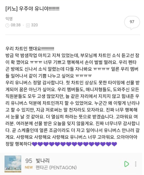 데뷔 후 첫 차트인 했을 때 키노 글