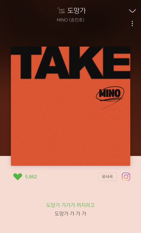 송민호 도망가 뜸 ㅠㅠ 노래 개좋아 많은 관심 부탁행 이제 한 10번 들었는데 벌써 가가각가ㅏ.. 이러고 있다 중독성 개쩜❤️