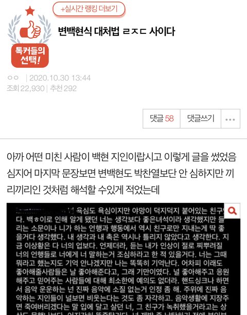 아래 글 하나는 자꾸 ㅌㅅ에서 사라져서