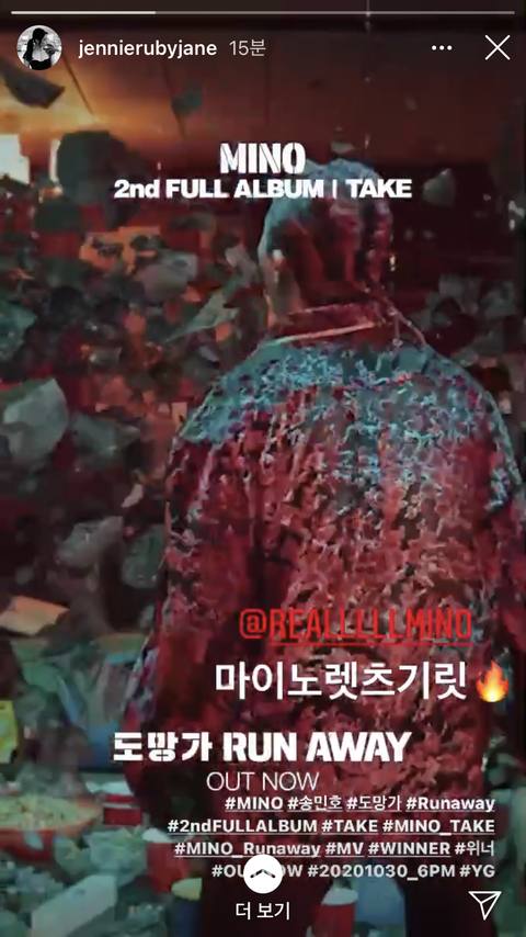 제니 인스타에 송민호 올라옴