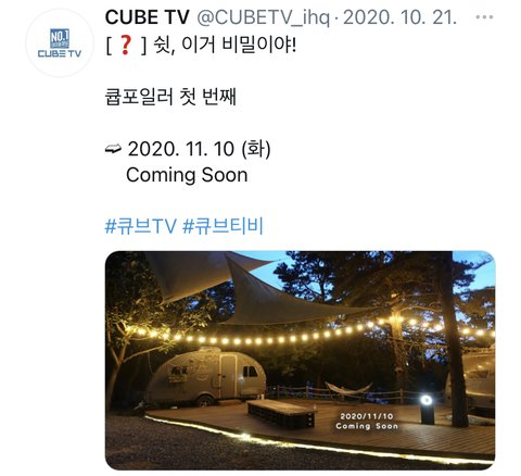 울 애들 뭐 또 하나봐 !! 큐브티비에서 언급했어! 리얼리티인가봐:)