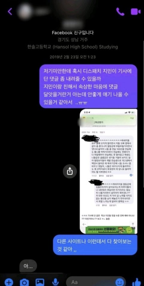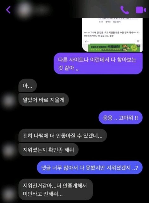 (밑에는 지워 달라고 부탁한 메시지 사진입니다)
