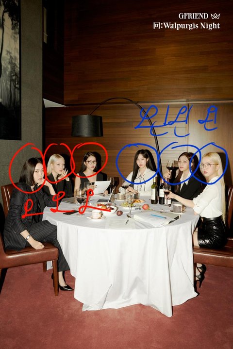 여자친구는 예린 신비 소원이 오른쪽 얼굴, 은하 유주 엄지가 왼쪽 얼굴.