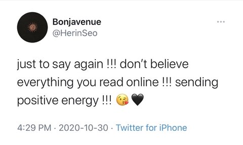 Sm루키즈출신 혜린이 오늘 트위터에 올린글. 해석하면 일단 인터넷에올라온글들 다믿지말라는얘기... 거기에 긍정적인 에너지를 보낸다는건 에스파 멤버들한테 화이팅하라는느낌같음 ㅇㅇ 참고로 혜린 아직까지도 루키즈다른연습생들이랑 맞팔이고 연락하고 친함ㅇㅇ 일단 에스파관련논란들 전부다 사실은 아닌것