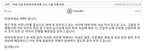 허위사실유포 고소고발한다네~ 특정커뮤니티가 어딜까 잘 알겠지?ㅋㅋㅋㅋ