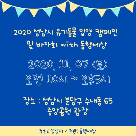 이번 행사를 통해 유기동물에 대한 인식변화를 기대하고, 나아가 유기동물 입양을 함으로써 성숙한 반려 문화와 생명 존중의 가치 확산에 많은 기여를 할 수 있었으면 좋겠습니다.