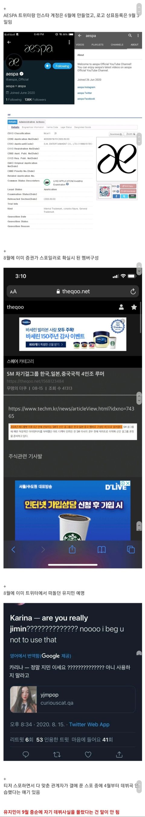 문자 조작이랑은 별개로 에스파 데뷔 멤버들이 연습생을 내쫓았다라는 의혹은 피해자가 있기 때문에 공론화할 필요성이 있음.