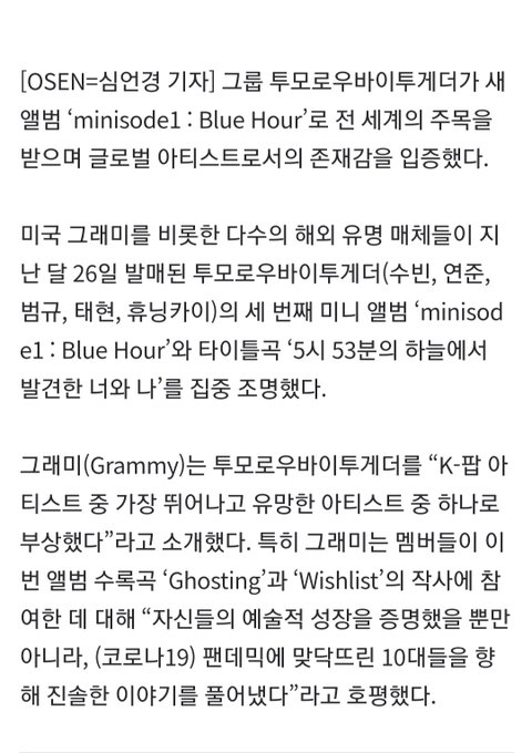 TXT 미 유명매체 집중조명 가장 유망한 아티스트