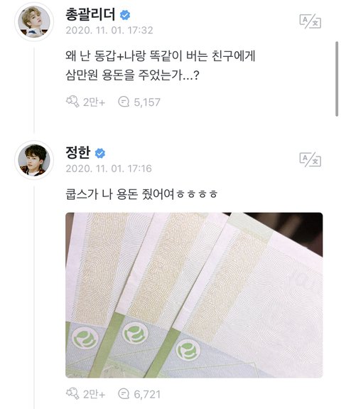 오늘자 세븐틴 용돈대란