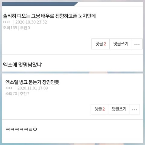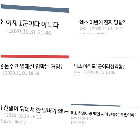 판녀들은 기존 엑소영상들을 끌올하고 궁예하고 추측하며 다른멤버들을 괴롭히고있음.