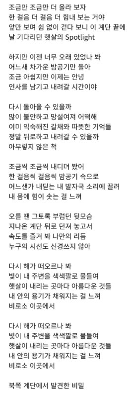 -나도 그냥 예쁜 가사들 참 많았는데 그래도 수능 전에 힘나는 가사 말곤 안가져왔어ㅜㅠ