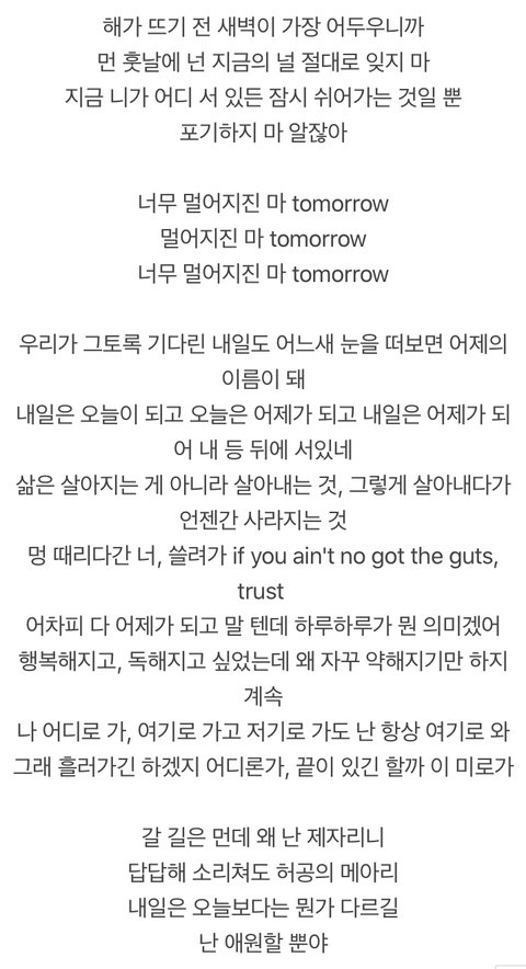 일단 난 내 본진 위로해주면서 희망적인 한글위주 가사 가져왔어!!!