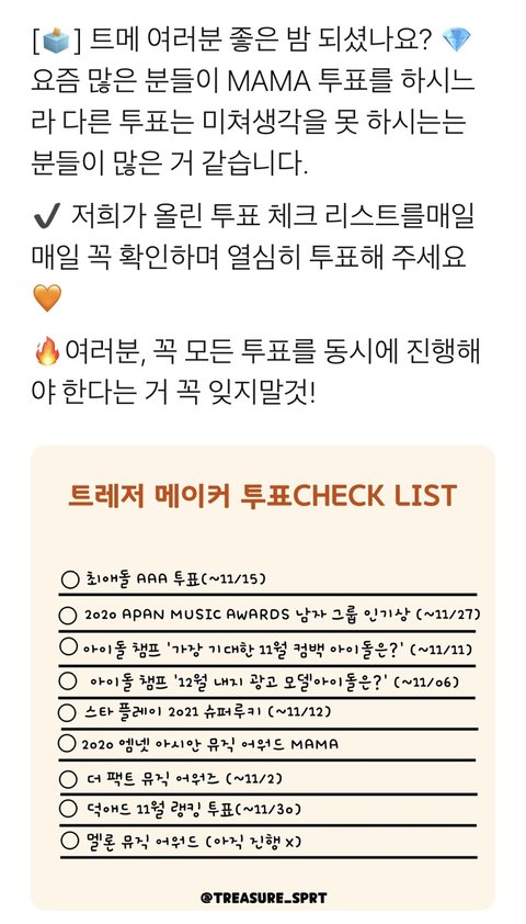 우리 투표 체크 리스트 떴다 다들 열심히 ㄱ ㄱ 서폿팀 최고다 진짜