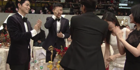 뉴스타상 받으러 나가는 백현 축하하는 중