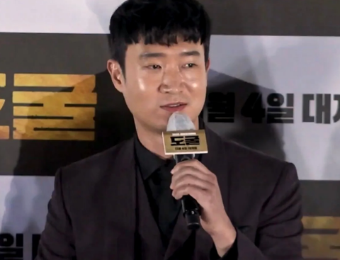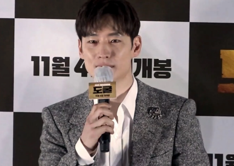 기자 간담회를 위해 입장함