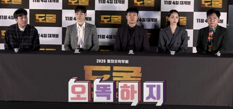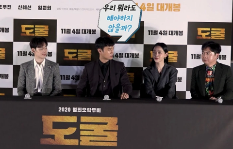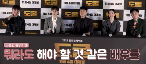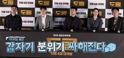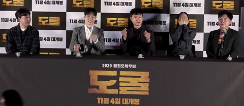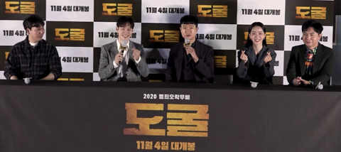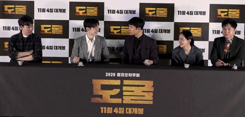 영화 <도굴> 출연 배우들과 감독이 시사회 후,