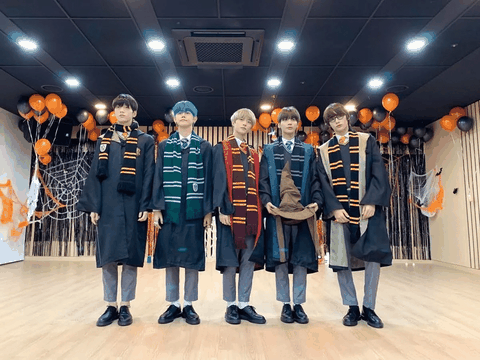 해리포터 망토 + 목도리 + 지팡이 + 안경 풀셋각자 서로가 뽑은 기숙사의 의상을 입은 뽀짝한 애기들에서