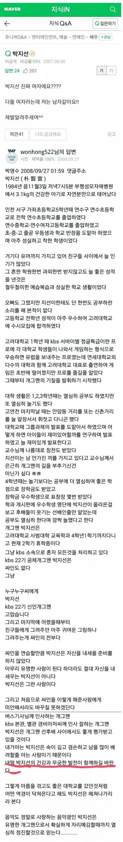 박지선 아버지 과거 지식인 답변