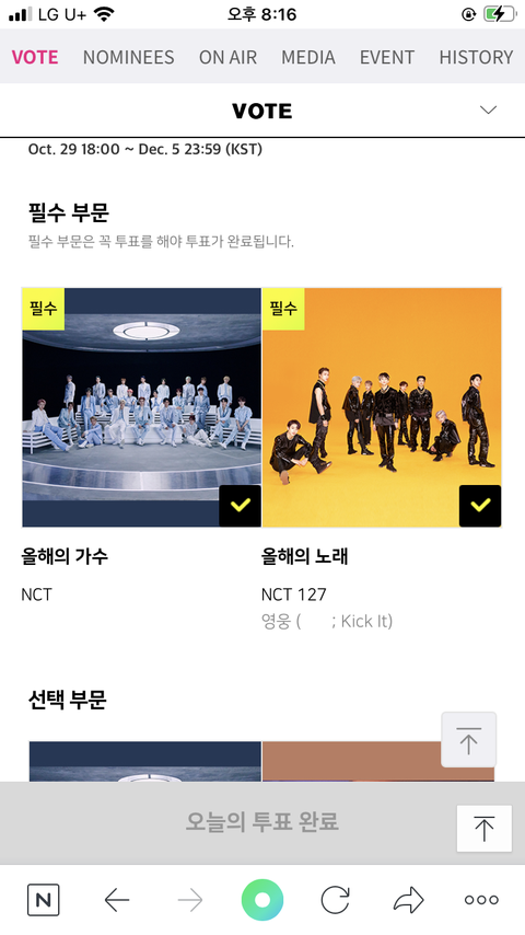 마마 투표 인증 >.<