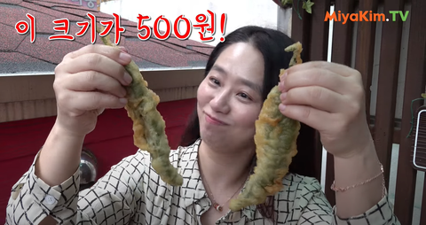 새우 튀김 오징어 튀김 고구마튀김이 3개 천원엄청 큰 고추 튀김 1개 500원