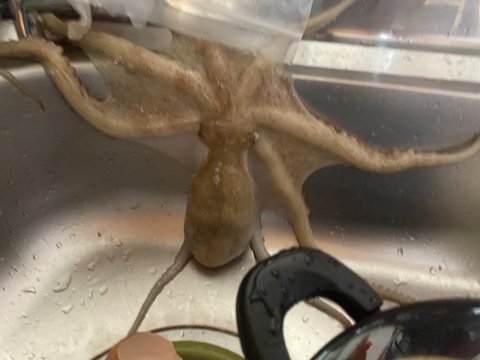 문어 2마리가 무너무너 하면서 기어나오고 있었다 우리 집을 정복하러 온 악당 옥토퍼인가