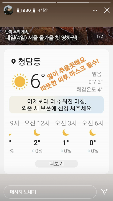 [인스타] 다들 따뜻하게 입고 다니자