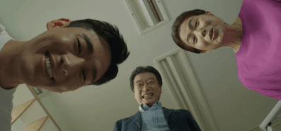 아기 보느라 정신 없는 남편과 시부모님