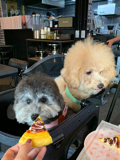 같이 이태원 놀러가서 '멍피자' 먹는 아가들