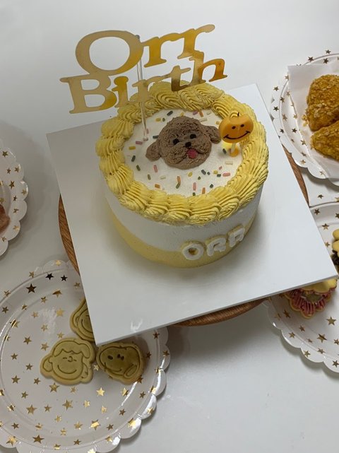 첫째 오르 생일을 맞아 제작한 오리고기+고구마 케이크에요!