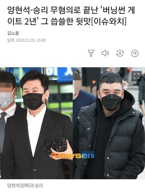 혹시 오해할까봐 적는건데 양현석만 성접대관련 무혐의 뜬거고 승리는 아직 군사재판 중이야 물론 이 ㅅㄲ가 혐의 부인중이긴 한데.. 승리라도 꼭 제대로된 처벌 받았으면 좋겠다ㅠ
