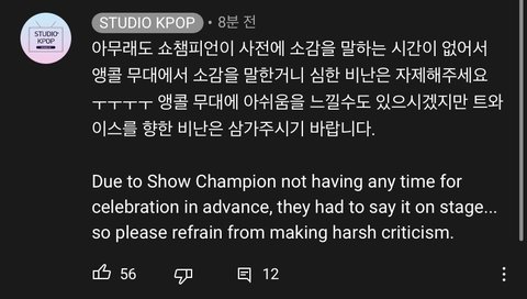 헐 스튜디오kpop 관리자가 트와앵콜에 댓글담