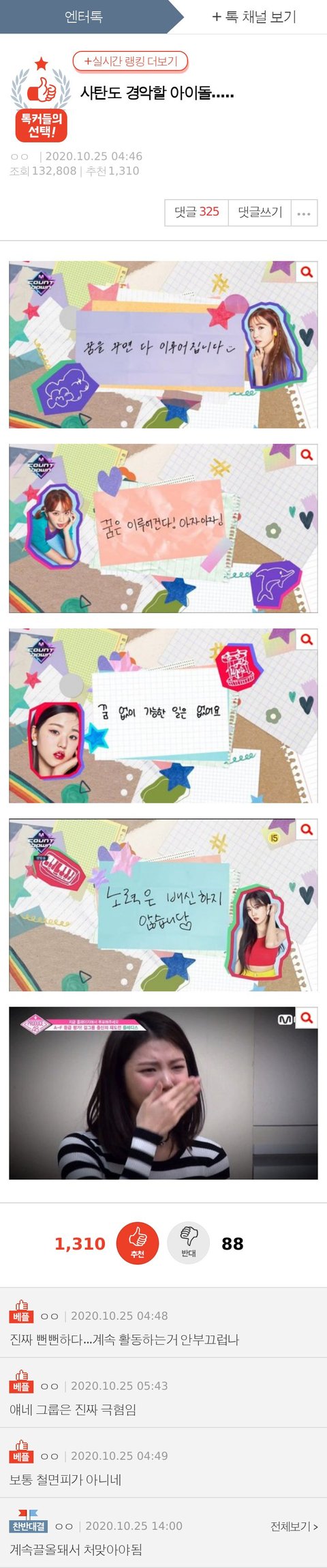 판녀: 아이즈원 해체해! 불매! 불매! 아 비비고랑 cgv는 못버리지ㅋㅋ