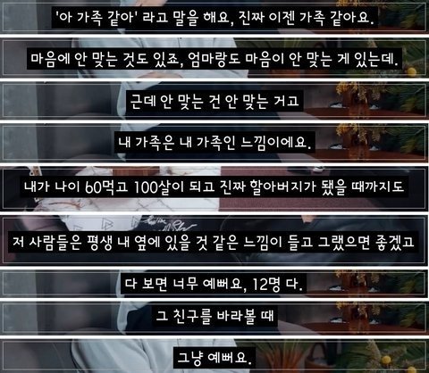 이런글 안쓰는게 좋지않나ㅋㅋ다들 본인그룹 다좋아보이는게 당연한거지.. 진짜관계는 멤버들만아는거고