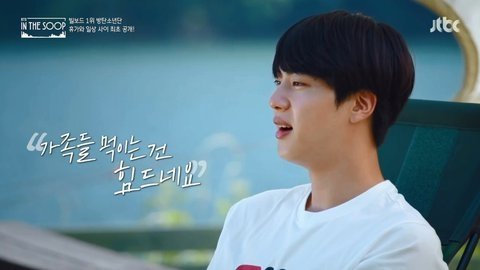 인더숲에서 멤버들 밥먹이고 나서 맏형 진이 한 말.. 방탄 관계성은 이 사진 하나로 설명이 끝나
