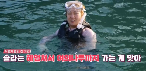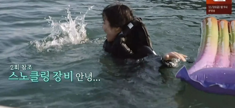 스노클링 장비가 물 아래로 내려감ㅋㅋㅋㅋㅋ