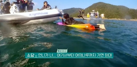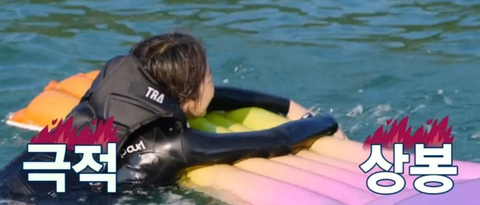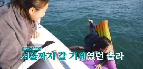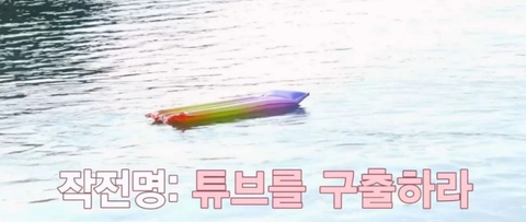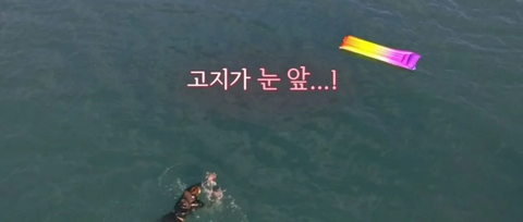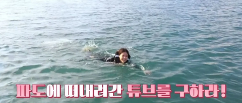 꽤나 멀리 떠내려간 듯한 튜브 간신히 구출함