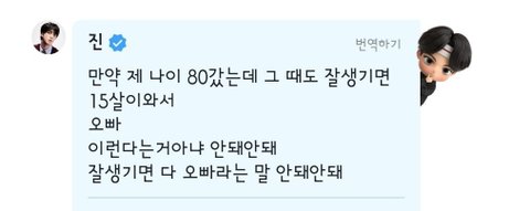 솔직히 나이 어리든 많든 평생 오빠라고 부를 사람 많다고여ㅠㅠ 김석진 오빠!!!
