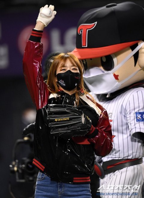 윤보미 유광점퍼 시구 서울LG에서만 4번 시구