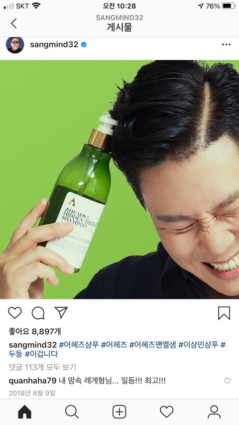 이슈가된 이상민샴푸가 이거다라고 사람들이 오인할 수 있는 의미의 사진을 본인이 직접 본인의 인스타그램에 등록하면서 직접 태그까지 #이상민샴푸 #두둥 #이겁니다. 이렇게까지 태그를 걸어두고서 방송에서 얘기했던 이상민샴푸는 어헤즈샴푸다라고 얘기한적이 없어서 본인은 거짓말한적이 없다라는 식의 해명으로 인해 사람들이 폭발한 듯 싶어요.