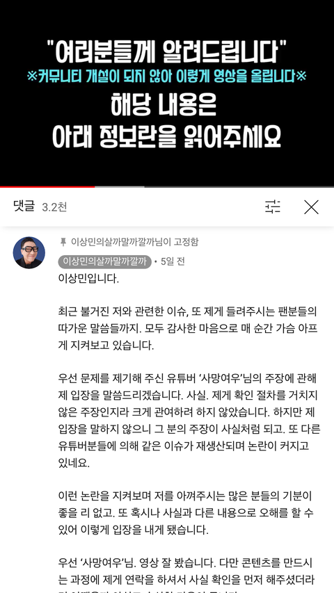 5. 뻑가TV, 이상민씨 해명관련 영상 공개 https://youtu.be/z7JFHrmSCNA